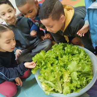 No dia 05 de julho, as crianças colheram os alfaces com o auxilio da GAE (Aline Nogueira) e servido na hora do almoço.